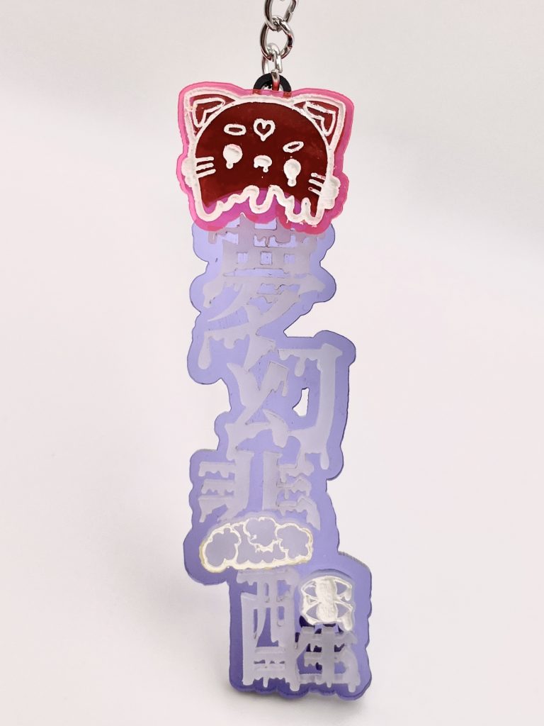 私にとって「原宿」は、さまざまな個性が自由に混ざり合う、刺激的で創造的な場所だと思いました。そこで、日本人の個性を象徴する「漢字」を使ったキーホルダーを制作しました。最初は既存の四字熟語を使う予定でしたが、より個性を出すために、今回だけの特別な創作四字熟語を制作しました。