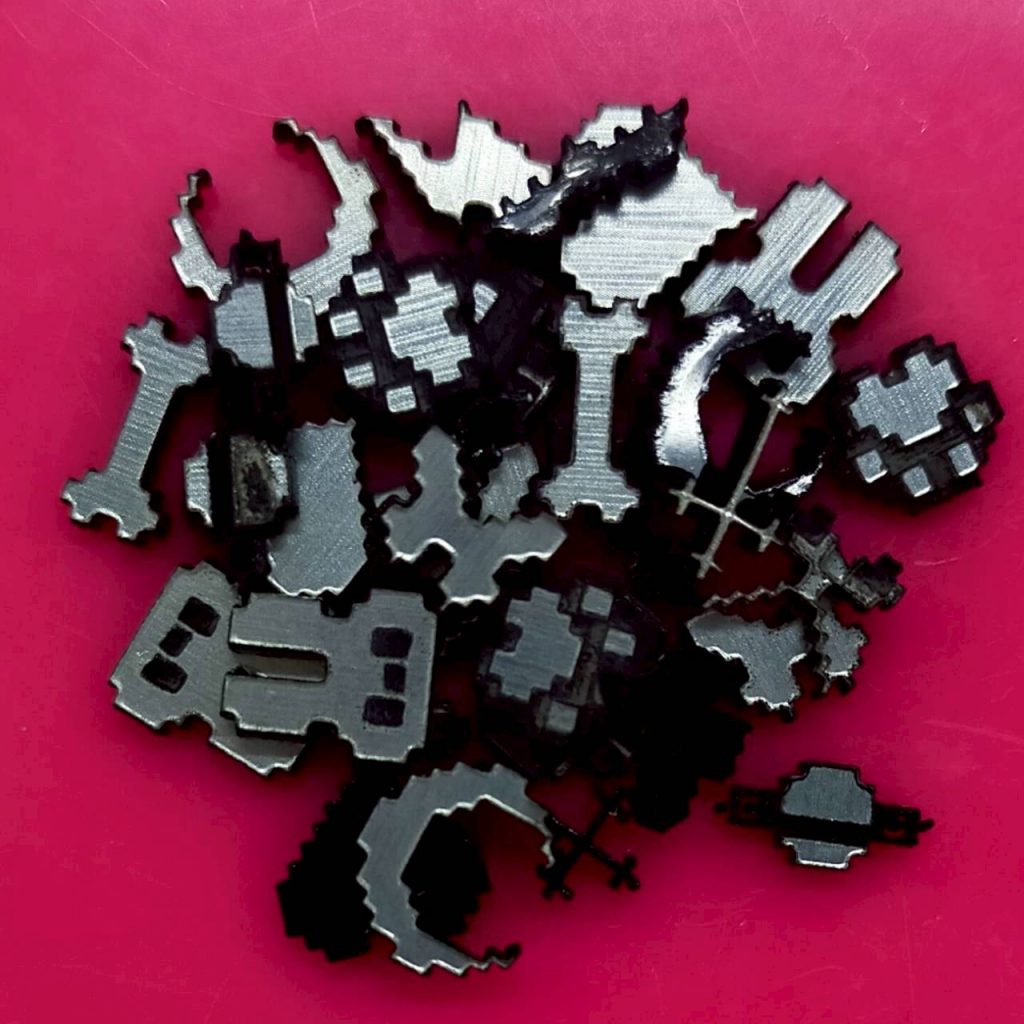 小さいピクセルパーツは、レーザー加工ならではの精密作業で作ることができました。2層版で、ネイルパーツを作るのは新しい発想だと思います!