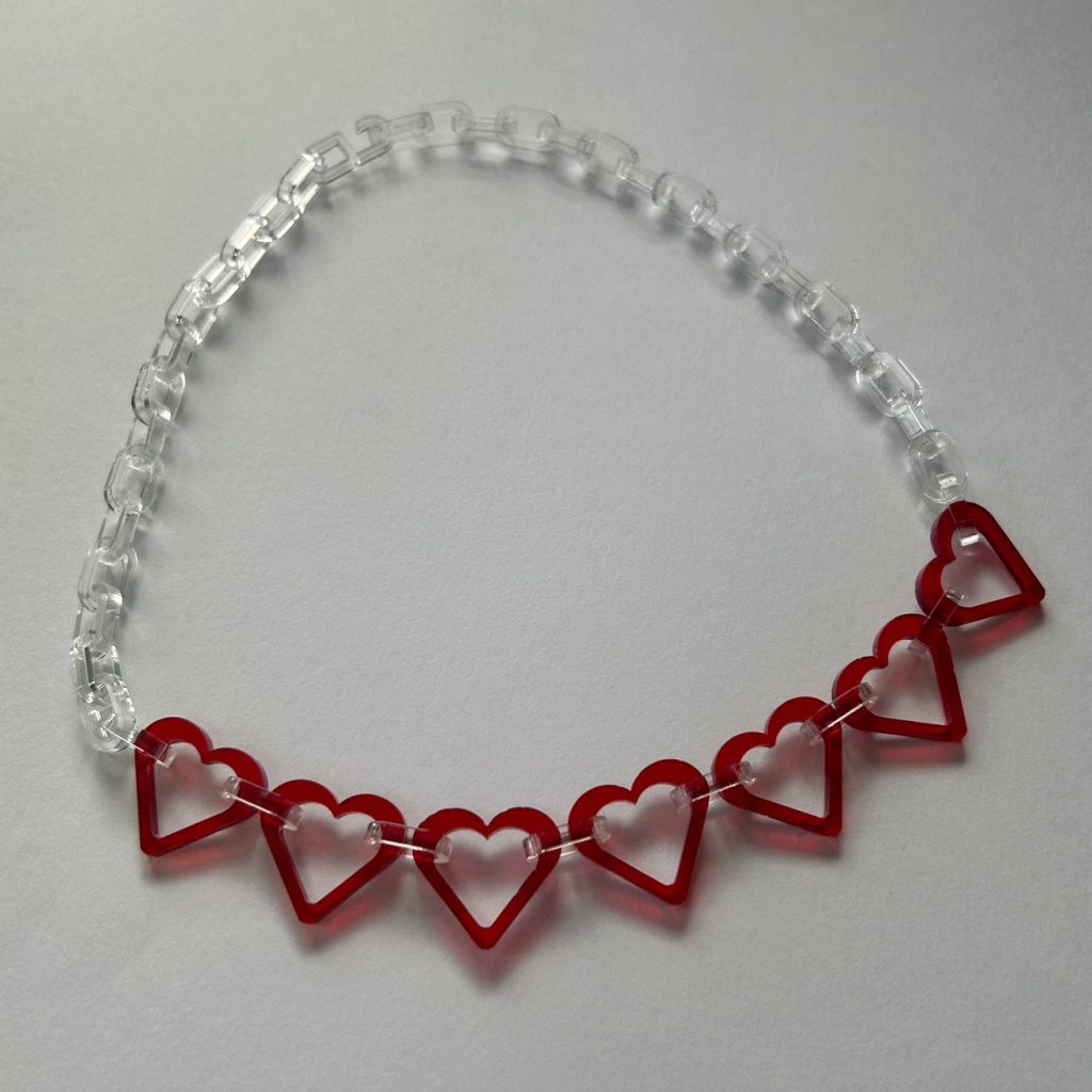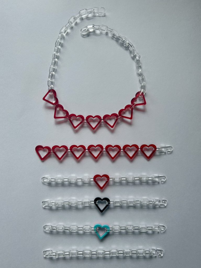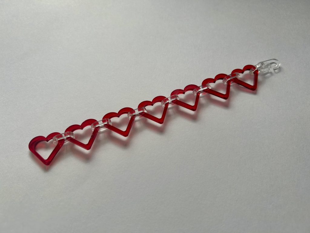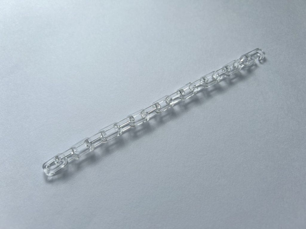 私の作品の魅力は、アクリルならではの透明感と光による繊細な表情です。光を受けることで氷のようにきらめき、見る角度によって印象が変わります。また、ブレスレットの素材として従来は金属が主流でしたが、アクリルでブレスレットを作ることで新鮮さや軽さ、日常使いのしやすさといった差別化要素を打ち出せると考えています。