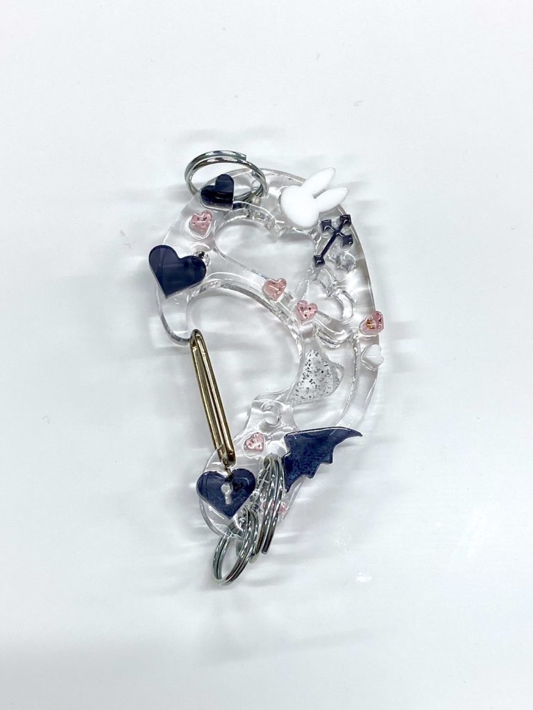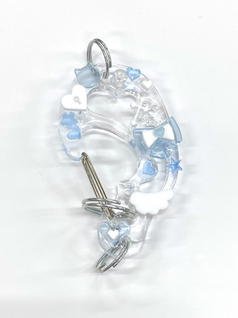 Brack / Pink,White/ Blue耳の形がかわいい、アクセサリーのようなカラビナ。透明なレジンの中に小さなモチーフを閉じ込めて、軽やかな印象に仕上げました。バッグやポーチにつければ、さりげなく個性をプラス!毎日を少し楽しくしてくれるアイテムです。