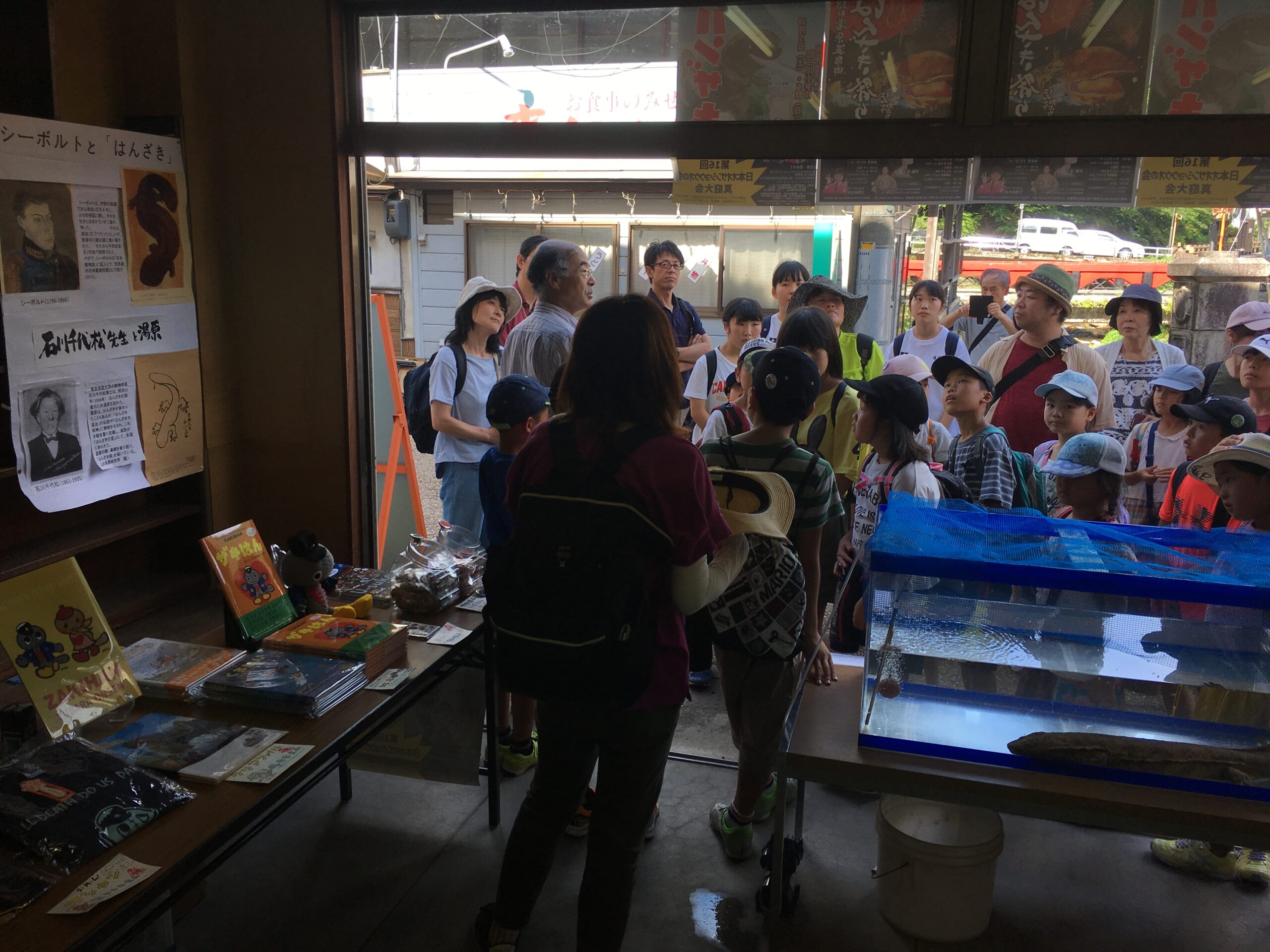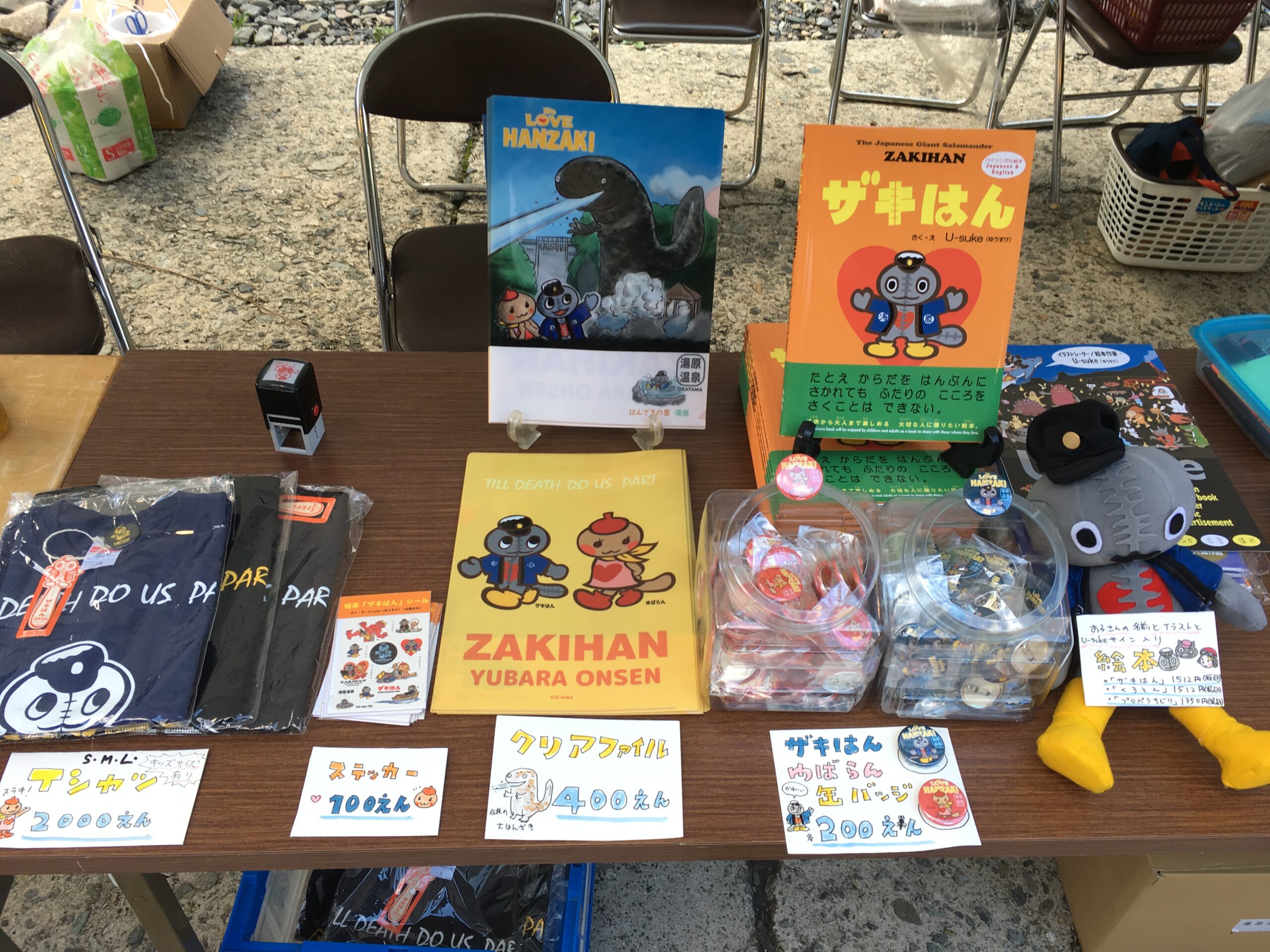 前夜祭と本祭の午前中は、いつもの「はんざきブース」で特別展示されている「オオサンショウウオ」とともに「ザキはん」の絵本サイン会とグッズを販売。 今年は缶バッジやクリアファイルなどの新しいグッズも販売しました。