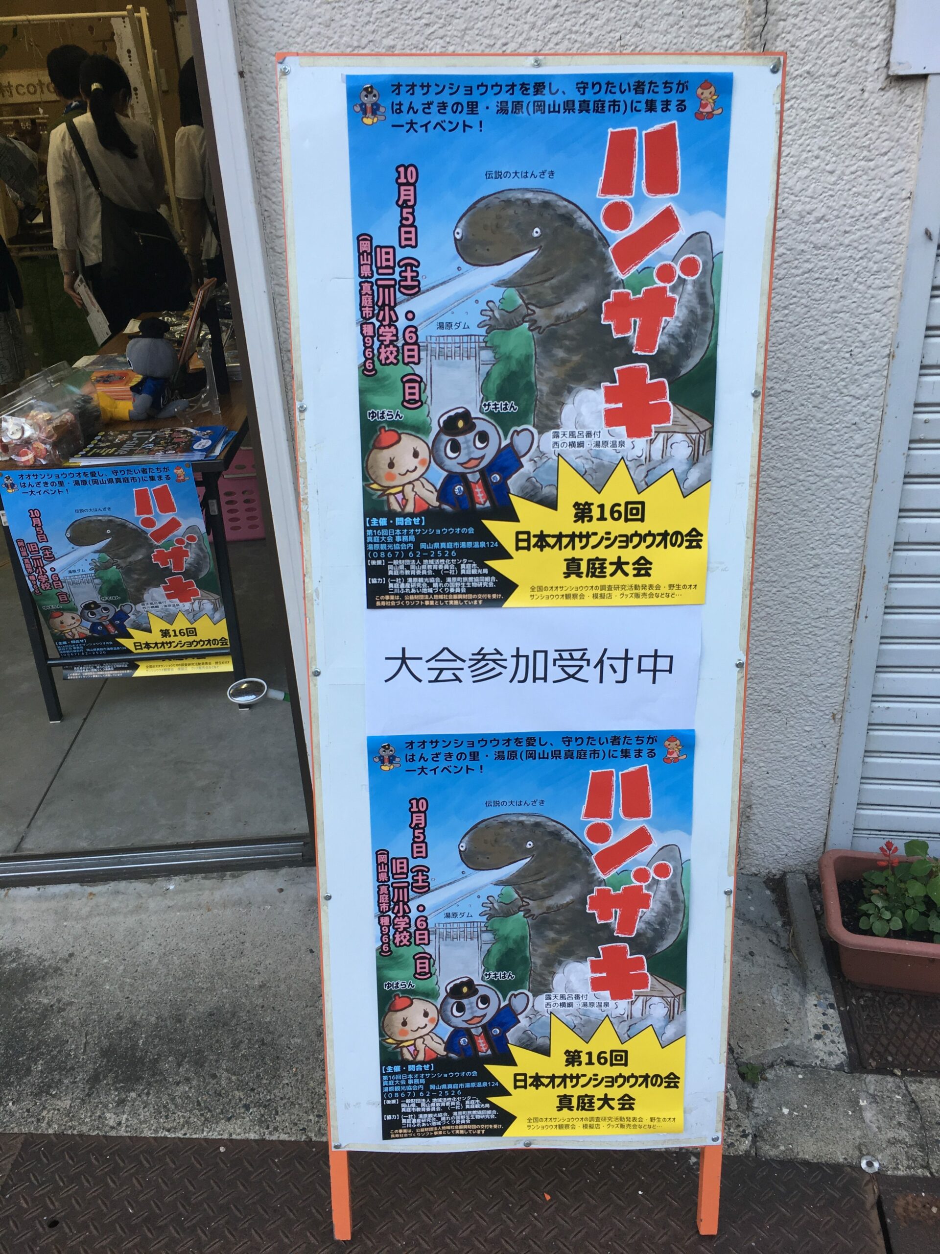 10月に開催するU-sukeデザインの「第16回日本オオサンショウウオの会真庭大会」のポスター。