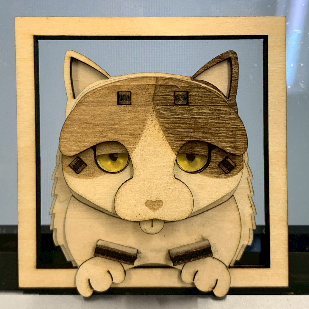 以下、個性あふれる学生たちによる「はじめてのレーザー加工作品・鉛筆立て」の一部を紹介します。