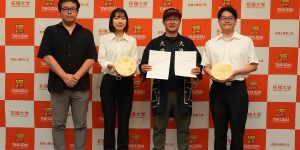 今回の曲げわっぱのデザインは、宮木健二准教授の授業課題として取り組み、拓殖大学工学部デザイン学科4年生の酒井優理子さんと齋賀琢巳さんによるデザインが選ばれました。